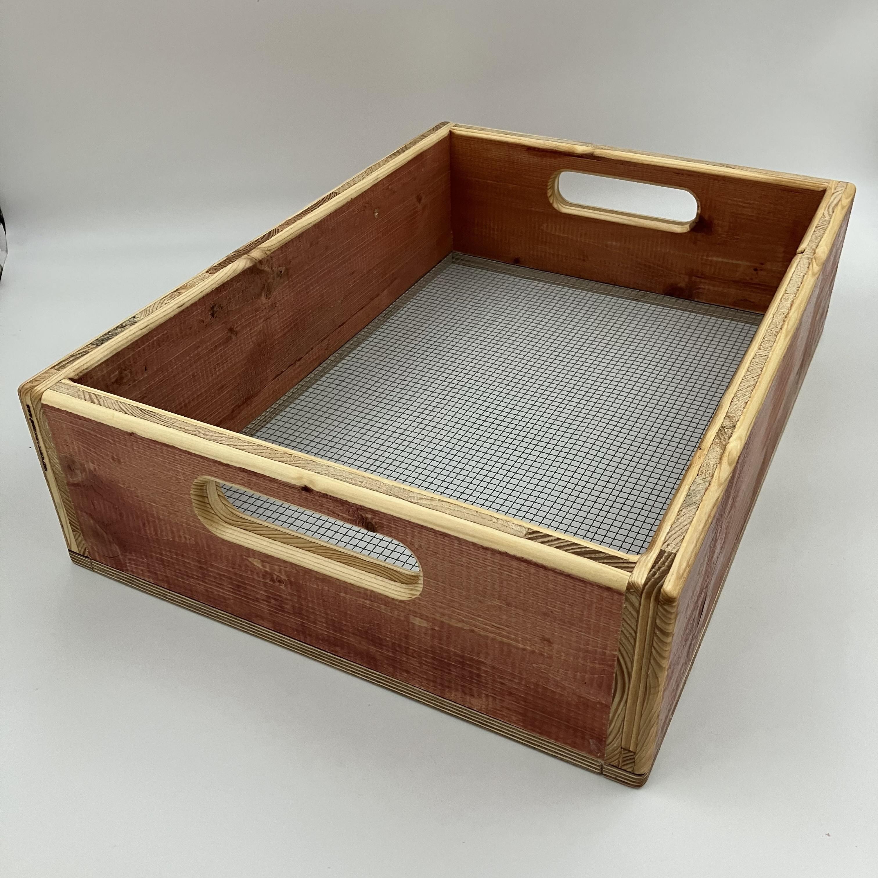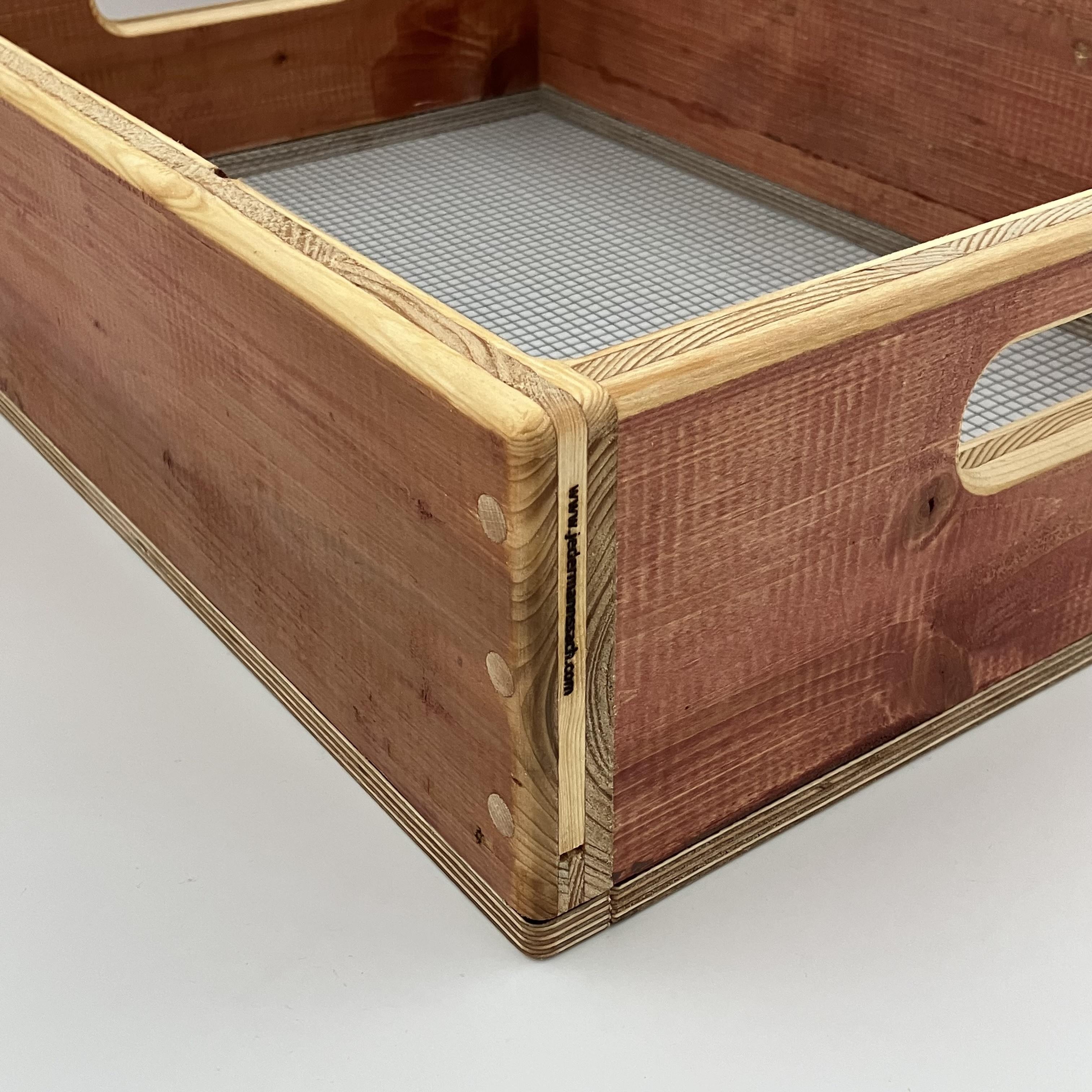 Durch die eingefrästen Griffmulden liegt das Sieb perfekt (Griffigkeit) in der Hand. Alle Kanten sind rund gefräst, somit ist das Sieb sehr handlich und angenehm zu halten.